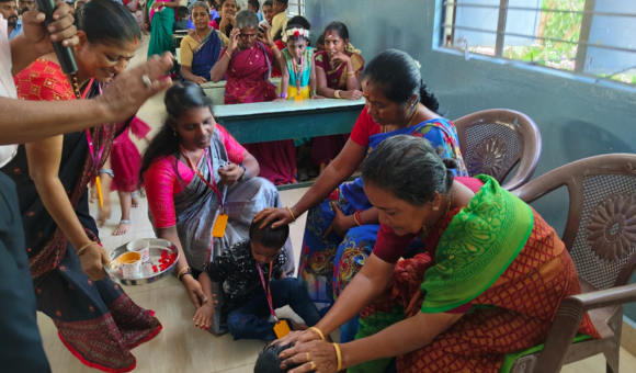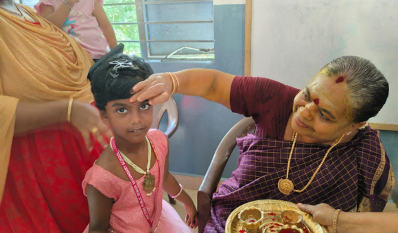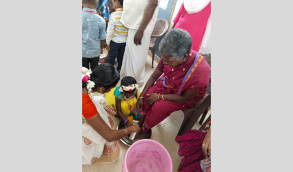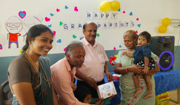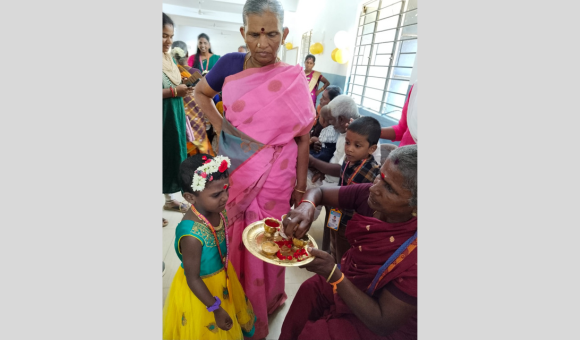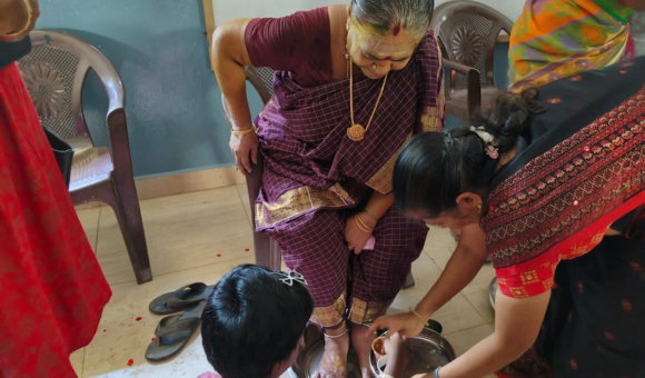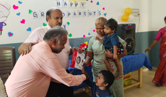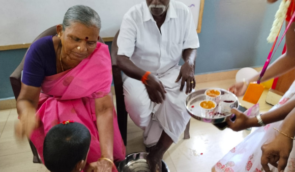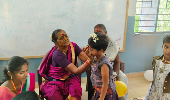 A Heartfelt Tribute – Our little ones honored their grandparents with a beautiful Padha Pooja, expressing gratitude and love for their endless blessings.
